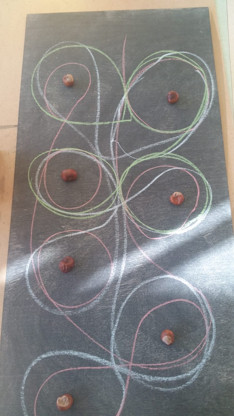 En wat we schrijven hoeven niet altijd letters te zijn. Met basisschrijfbewegingen als lussen en bogen kunnen we al beginnen lang voordat de kinderen aan letters toe zijn..