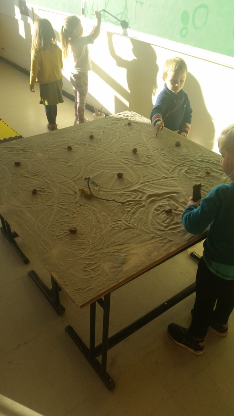 Met allerlei materialen zoals lijm, scheerschuim, badschuim, verf, wascokrijtjes, krijt, stiften, water etc.. ervaren kinderen hoe ze op een plezierige manier schrijf-motorische vaardigheden kunnen ontwikkelen .