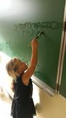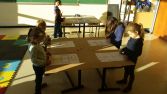 In het gymlokaal, aan tafel, in de lucht, op het bord en op papier.